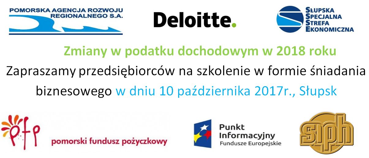 Pomorska Agencja Rozwoju Regionalnego S.A., Deloitte wraz z partnerami zaprasza przedsiębiorców na śniadanie biznesowe, które odbędzie się w dniu 10 października 2017r. w Słupsku.
