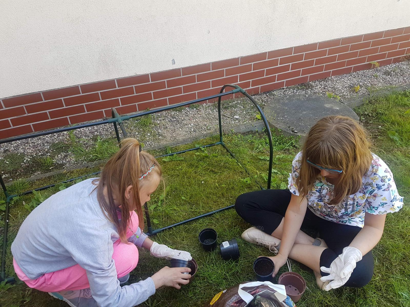 Członkowie Szkolnego Klubu Niemarnowania – uczniowie klas IV i V z Szkoły Podstawowej z Jezierzyc założyli szkolny ogródek.