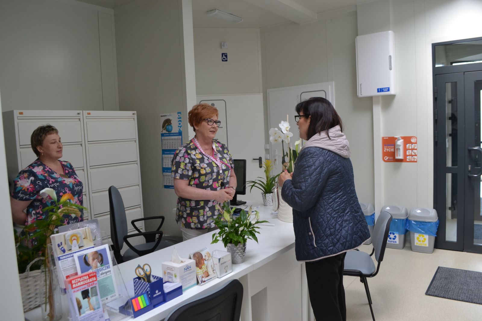 Pani Wójt zwiedziła dostępne pomieszczenia w tym punkt punkt pobrań laboratorium analitycznego oraz gabinet zabiegowy. Przychodnia czynna jest od poniedziałku do piątku w godz. 8.00 - 18.00