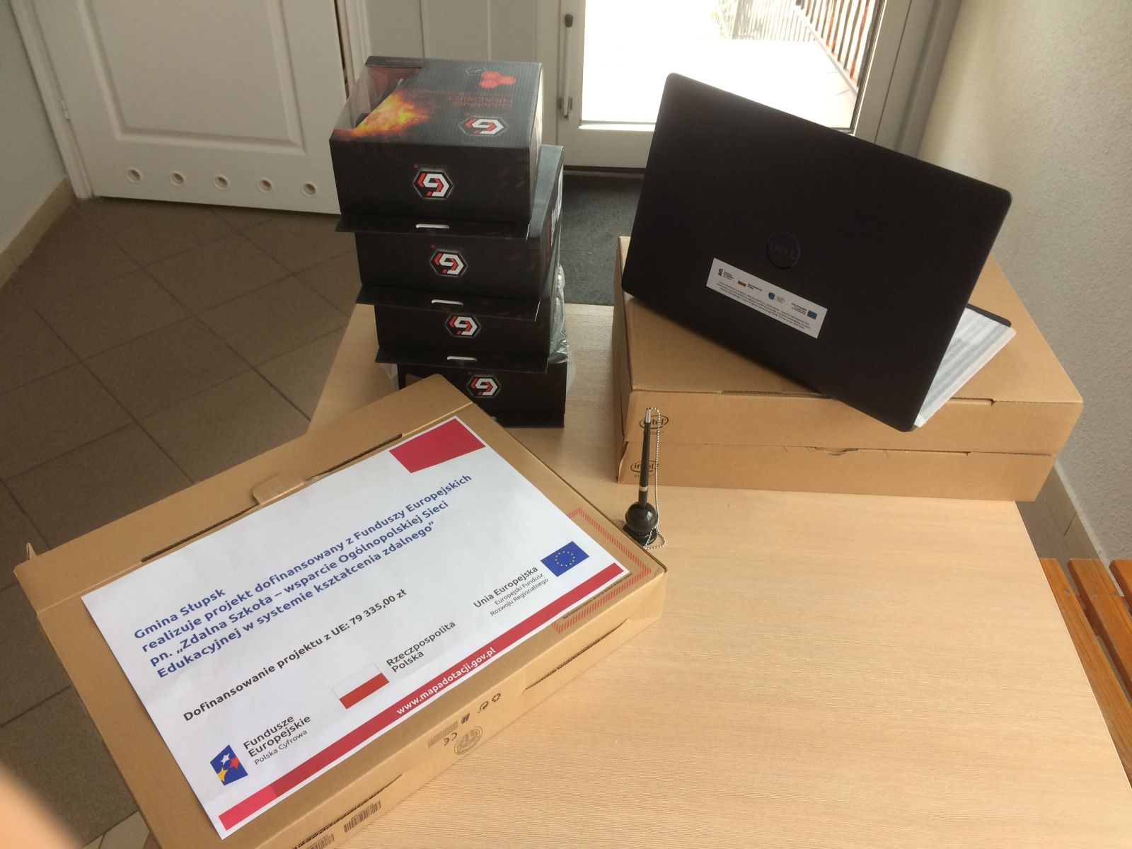 Pierwsze laptopy zakupione w ramach projektu pn. „Zdalna Szkoła – wsparcie Ogólnopolskiej Sieci Edukacyjnej w systemie kształcenia zdalnego” współfinansowanego ze środków EFRR w ramach Programu Operacyjnego Polska Cyfrowa na lata 2014-2020 już trafiły do gminnych szkół.