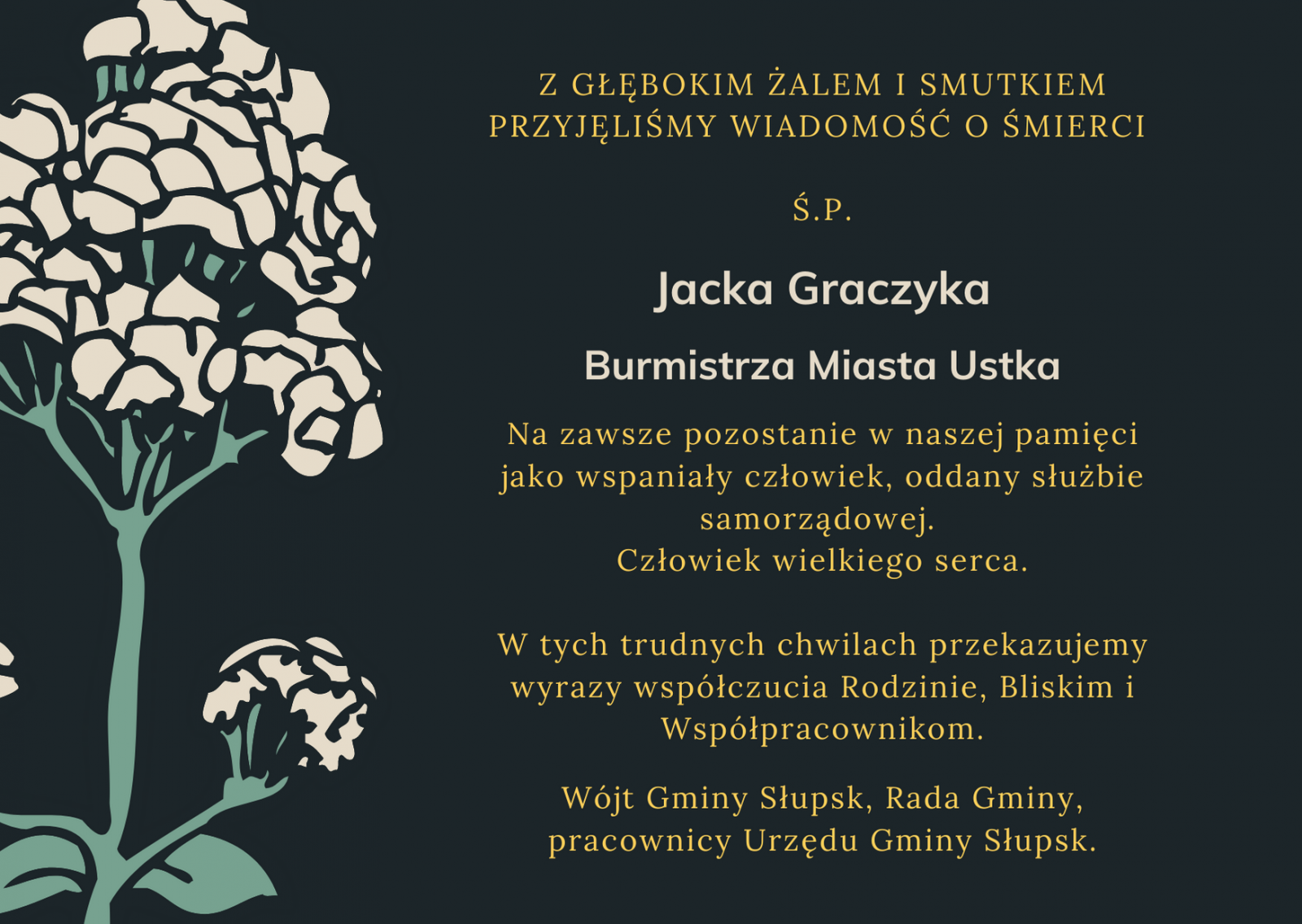 Kondolencje Z głębokim żalem i smutkiem przyjęliśmy wiadomość o nagłej śmierci ś.p. Jacka Graczyka - wieloletniego Burmistrza Miasta Ustka