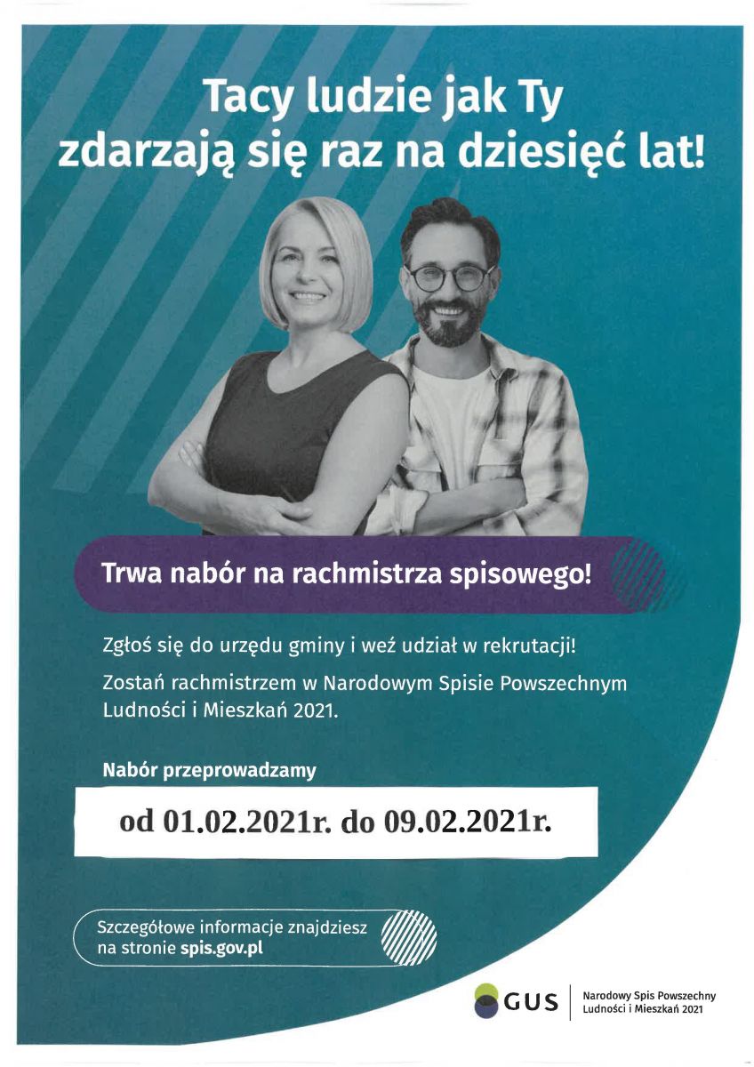 Dodatkowych informacji w sprawie naboru udziela Anna Formela - koordynator Gminnego Biura Spisowego Urzędu Gminy tel. 59 842-84-60 wew. 14 lub tel. komórkowy 0609008014.