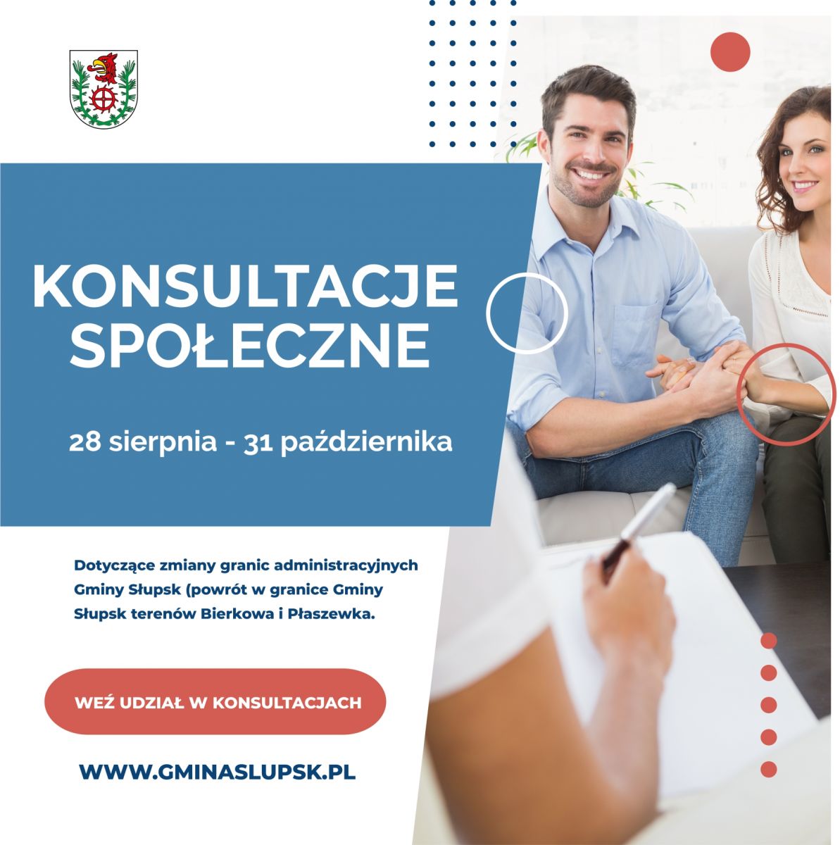 Trwają konsultacje społeczne, w których mieszkańcy Gminy Słupsk odpowiedzą na pytanie: Czy jest Pan/Pani za odzyskaniem przez Gminę Słupsk utraconych (przejętych przez Miasto Słupsk) terenów inwestycyjnych w Płaszewku oraz terenów w Bierkowie – cmentarz historyczny, a tym samym za zmianą granic administracyjnych Gminy Słupsk? Konsultacje potrwają do 31 października br.