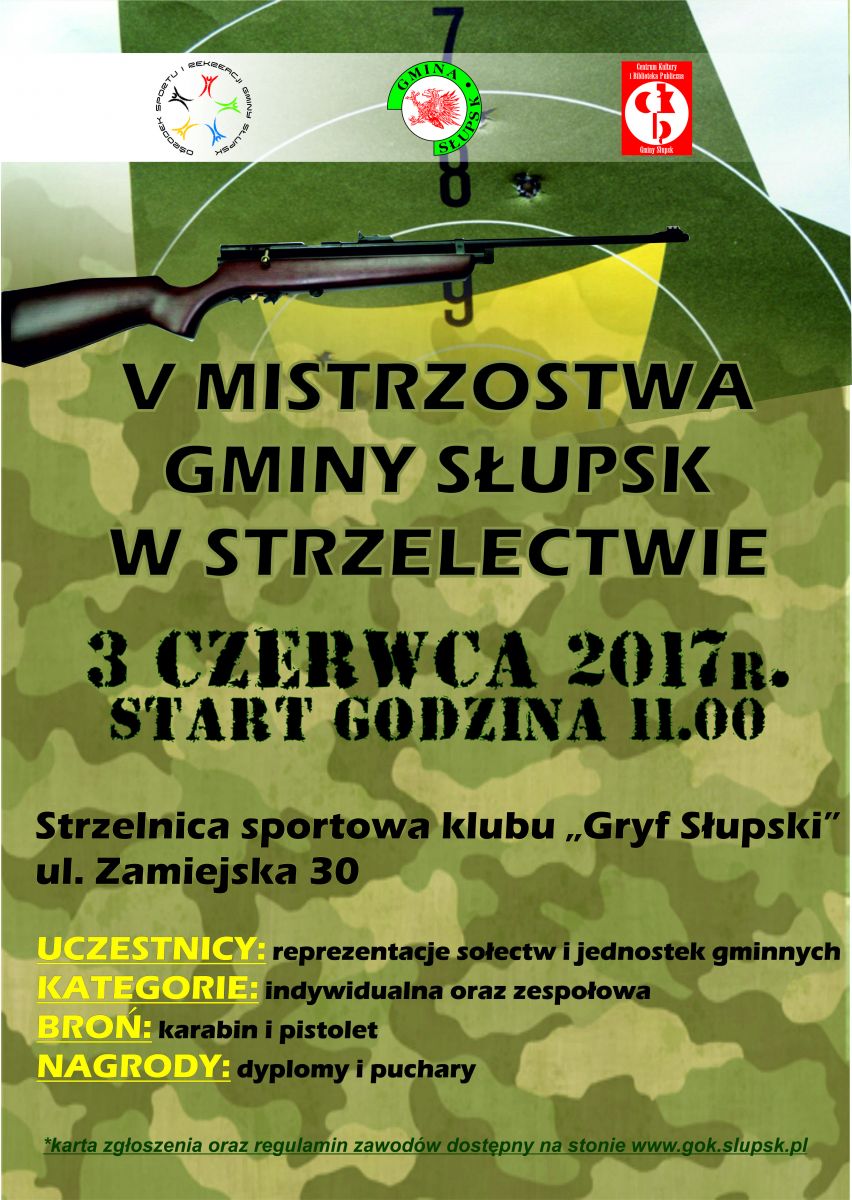 Zapraszamy do udziału w V Gminnych Mistrzostwach w Strzelectwie.Szczegóły na plakacie.