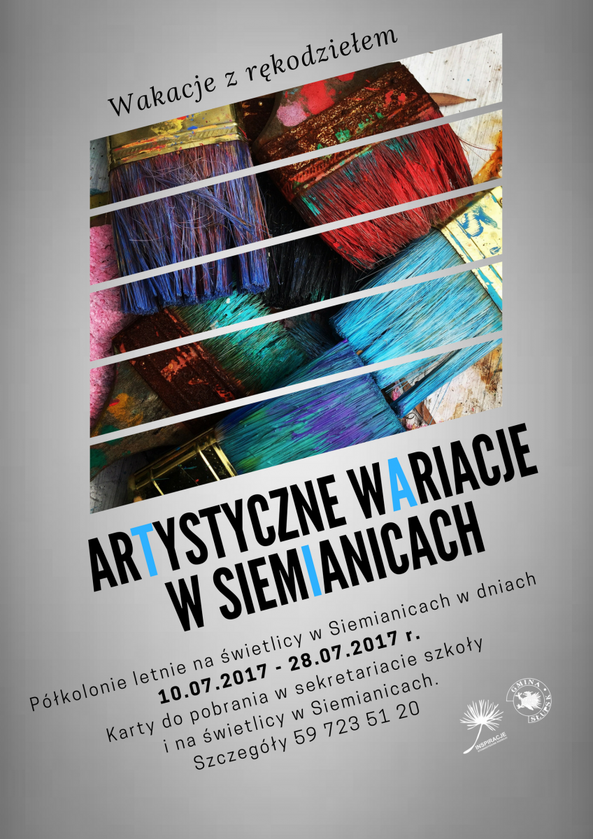 Na zajęcia wakacyjne (świetlicowe i półkolonie) obowiązują zapisy oraz karta uczestnika wypoczynku (do pobrania na świetlicy) oraz w szkole w Siemianicach (termin oddania kart: 12.06.2017 r.). Szczegóły na świetlicach i pod numerem telefonu: 59 723 51 20. W czerwcu odbędzie się spotkanie organizacyjne dla rodziców.