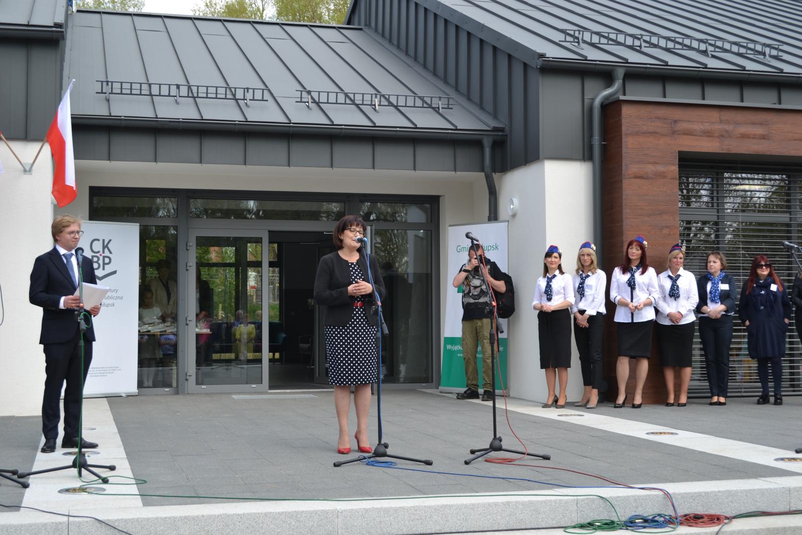 Na uroczystym otwarciu obecni byli lokalni samorządowcy, mieszkańcy oraz przedstawiciele instytucji kulturalnych z powiatu słupskiego, a także gość specjalny były dowódca jednostki w Redzikowie gen. Mirosław Hermaszewski. Przecięcia wstęgi dokonała wójt Gminy Słupsk Barbara Dykier wraz z generałem.