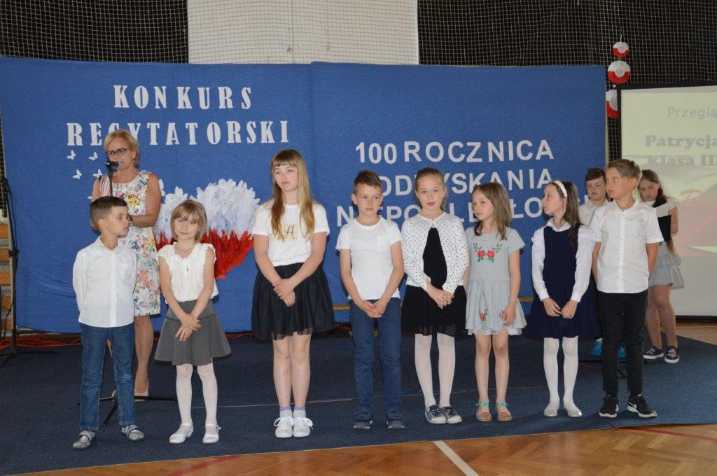 Konkurs ten był jedną z imprez upamiętniających 100. rocznicę odzyskania niepodległości przez Polskę. Dzieci z klas I-III szkoły podstawowej prezentowały wiersze w formule przeglądu twórczości. Po występach maluchów rywalizowali starsi uczniowie w dwóch grupach wiekowych: pierwszą stanowiły klasy IV-VI szkoły podstawowej, a drugą klasy VII SP oraz II i III gimnazjalne.