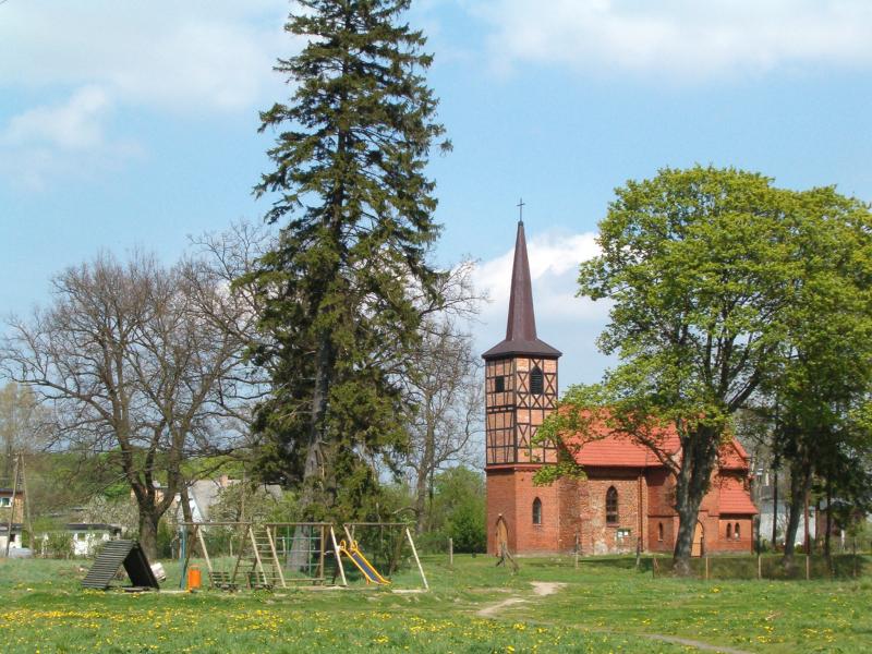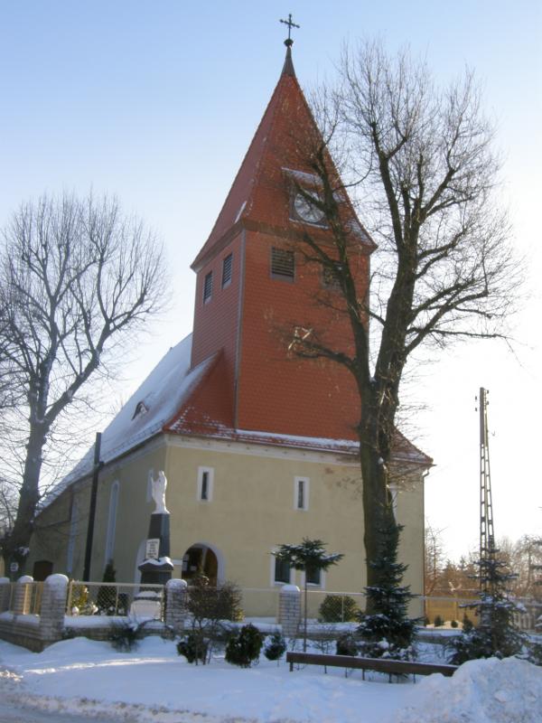 - Murowano-szachulcowy kościół filialny p.w. św. Antoniego z XV w. i przebudowany w drugiej połowie XIX w. zachowała się bardzo stara, wydrążona w granicie chrzcielnica