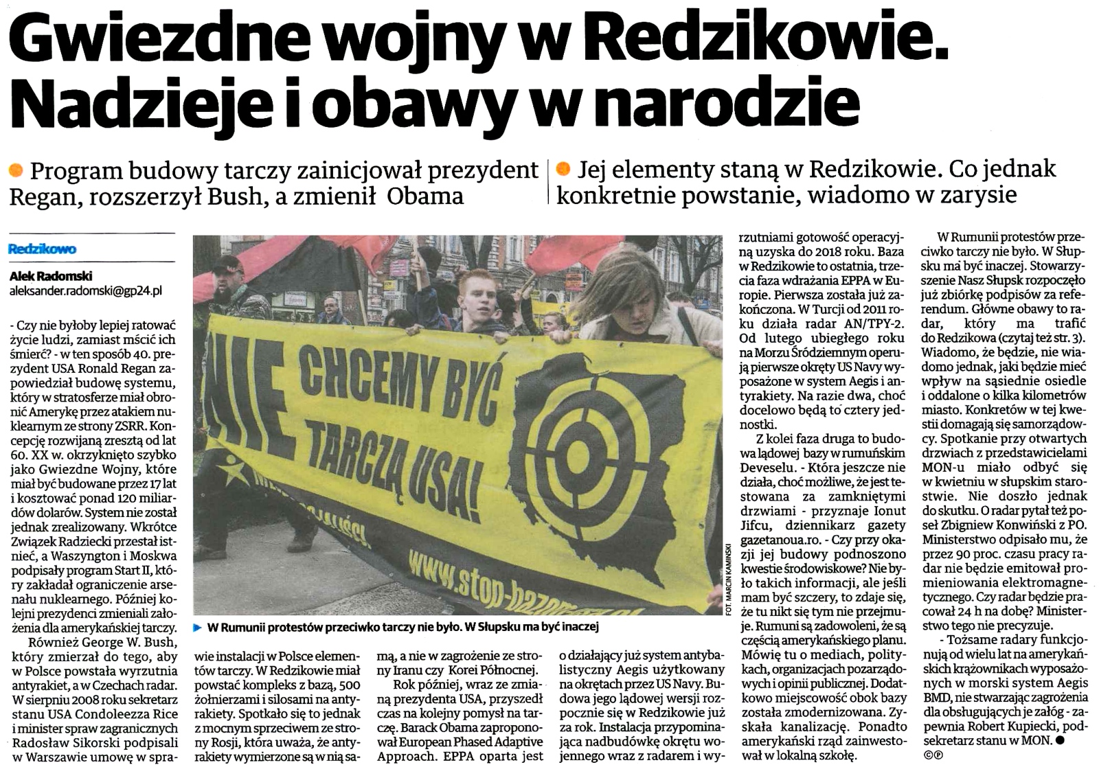 - "Gwiezdne wojny w Redzikowie. Nadzieje i obawy w narodzie" (źródło: Głos Słupska 30 kwietnia 2015r.)