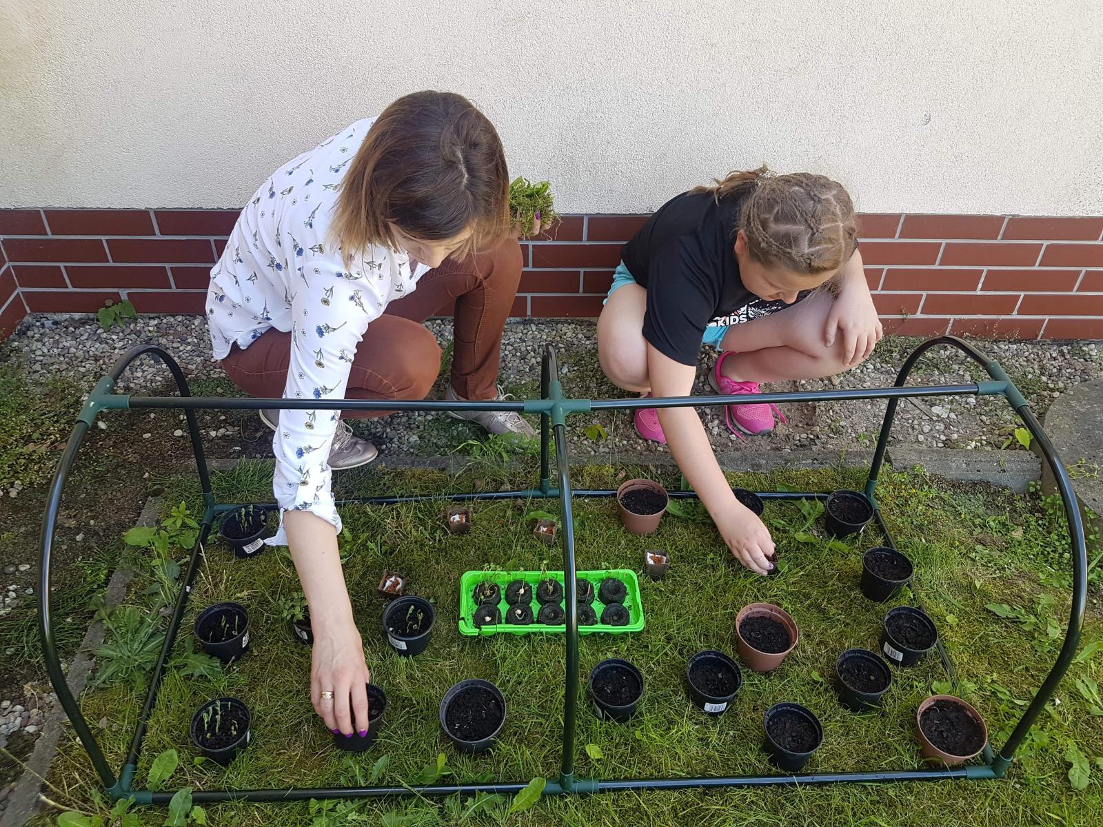 Posadzili sałatę, marchewkę, groszek i rzodkiewkę. Aby przyśpieszyć uprawę roślin i ochronić je przed szkodliwymi warunkami zewnętrznymi, przykryli warzywa tunelem ogrodniczym. Teraz codziennie ich doglądają, podlewają i czekają na pierwsze plony.