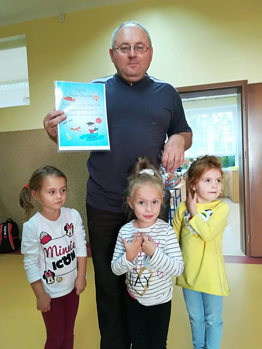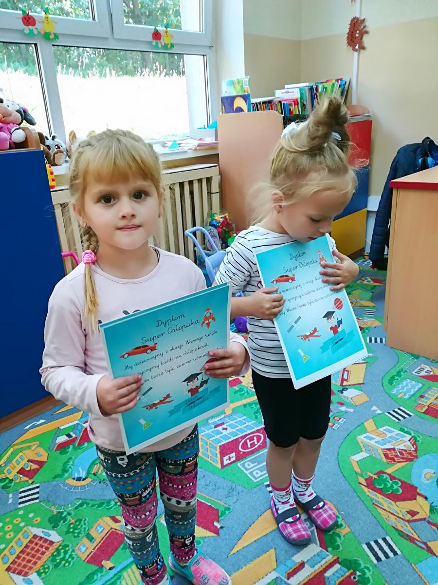 Dziewczynki z przedszkola w Głobinie pamiętały o swoich przedszkolnych kolegach i z okazji przypadającego 30 września Dnia Chłopaka wręczyły im odznakę Super Chłopaka i słodki upominek.