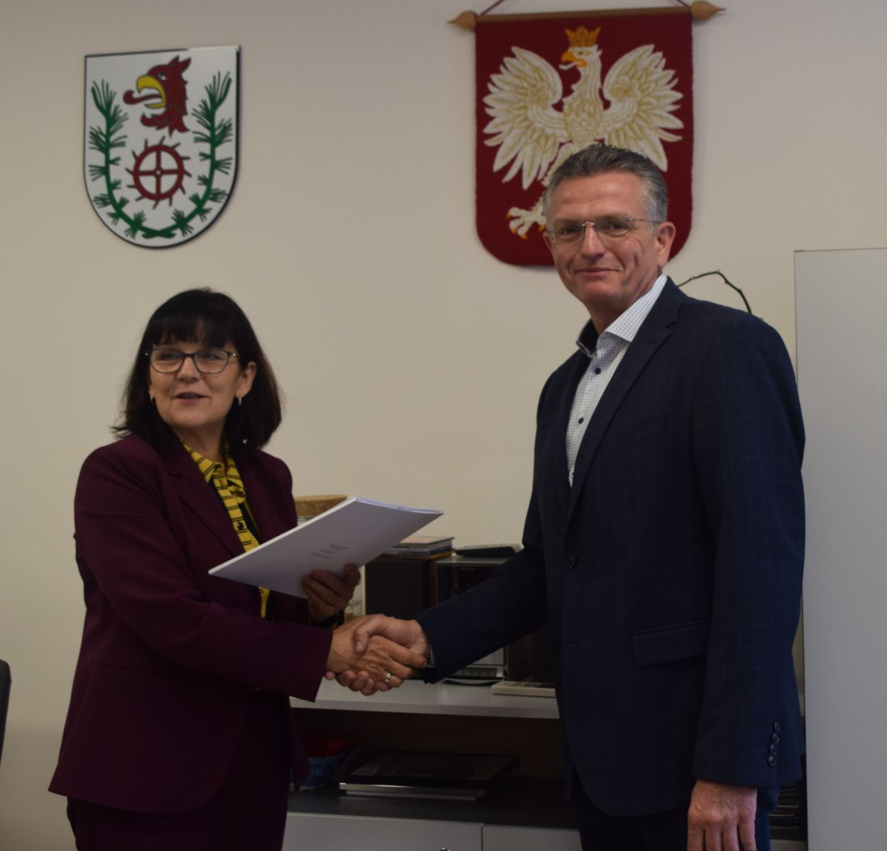 W obecności pana Radosława Lewandowskiego, reprezentującego Bank Gospodarstwa Krajowego, umowa podpisana została przez wójta gminy Słupsk Barbarę Dykier, Skarbnika Gminy Słupsk – panią Małgorzatę Dąbrowską oraz Wykonawcę zadania pana Marcina Kwiatkowskiego – Prezesa Zarządu firmy Krężel Sp. z o.o.