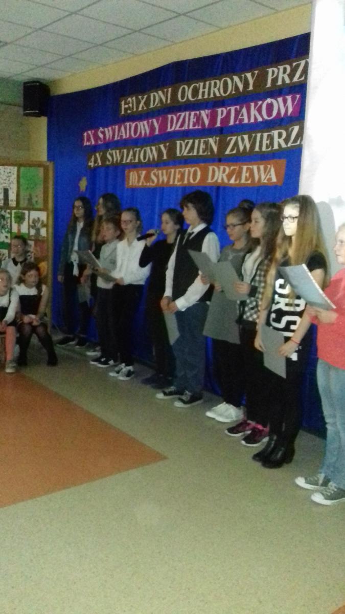 Tradycją w Szkole Podstawowej w Jezierzycach stały się obchody październikowych świąt przyrodniczych. Dni ochrony przyrody, Święto Drzewa, Światowy Dzień Ptaków i Dzień Zwierząt to wspaniała okazja do przypomnienie znaczenia środowiska dla życia, zdrowia i dobrego samopoczucia. Również i w tym roku uczniowie wzięli czynny udział w tym świętowaniu. Przygotowali ciekawy występ, piosenki, prezentację. Specjalnym gościem był pan leśniczy Paweł Muzyka, który przybliżył sposób gospodarowania zasobami leśnymi i przywiózł sadzonki drzew. Całości dopełniły piękne dekoracje i konkurs na jesienne stroiki, przeprowadzony przez panią Izabellę Łoś. Oprawą muzyczną zajęła się pani Beata Frąckowska, apel i dekoracje przygotowały panie: Dorota Grędecka, Małgorzata Świerczyńska-Gid i Marlena Maziec-Treziak.