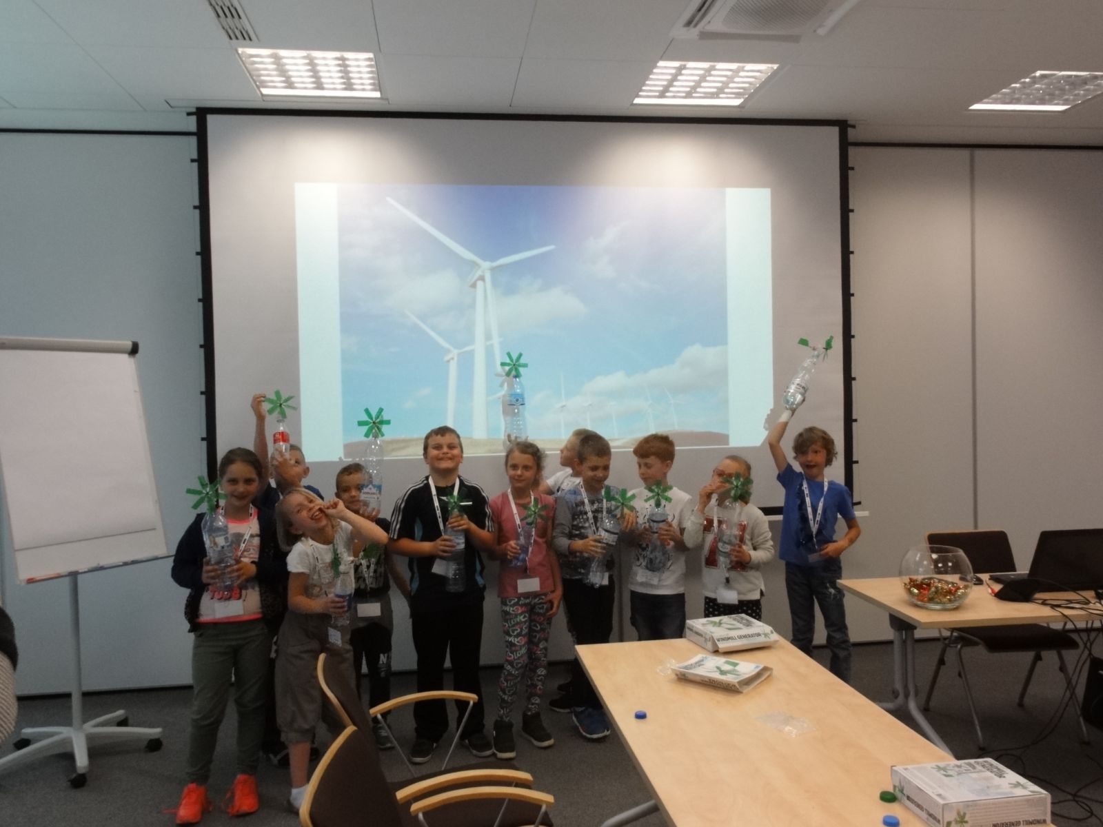 Dowiedziały się, czym jest wiatr i woda; skąd się bierze energia i jak ją można uzyskać z wiatru i wody. Zrobiły, pod czujnym okiem instruktorów, „Lampkę dynamo”, „Elektrownię wiatrową”, „ Eko zegar” i „Filtr wody”. Celem zajęć była przede wszystkim dobra zabawa i kreatywna nauka poprzez zabawę. Zajęcia dzieciom bardzo się podobały.